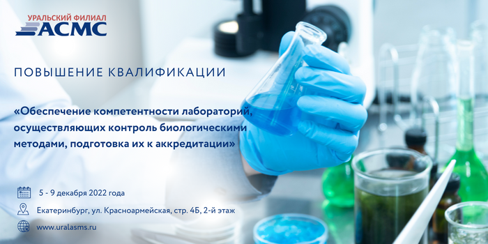 5 – 9 декабря программа повышения квалификации "Обеспечение компетентности лабораторий, осуществляющих контроль биологическими методами, и подготовка их к аккредитации»