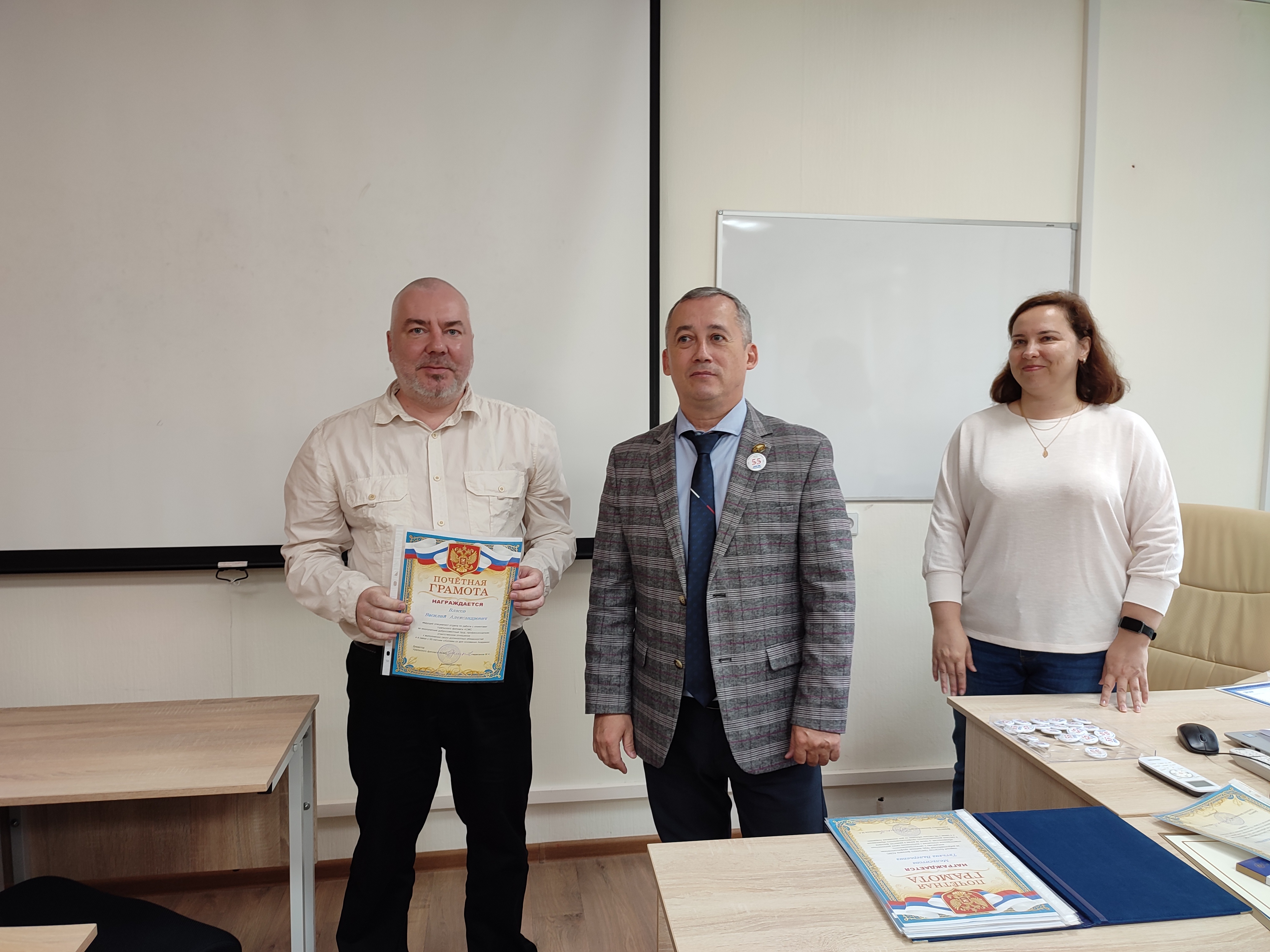 От имени Руководителя Росстандарта Антона Шалаева и по поручению ректора Академии Александра Зажигалкина, директор Уральского филиала АСМС Михаил Черепанов вручил сотрудникам филиала почётные грамоты Ведомства и Академии.