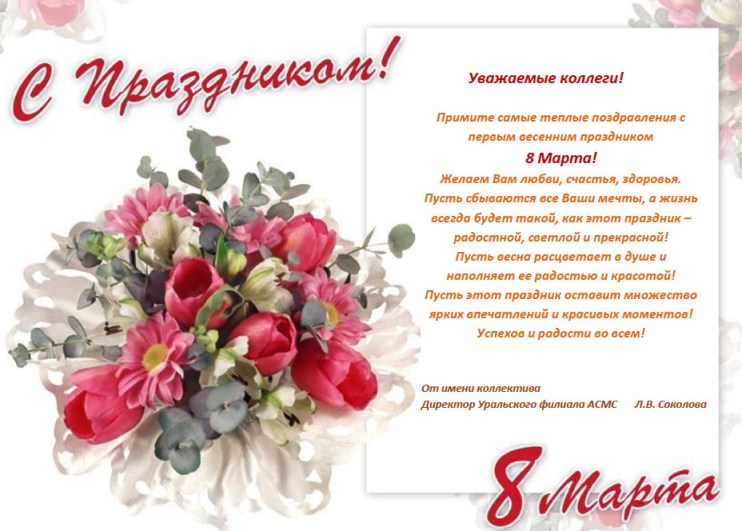 Уважаемые коллеги! Примите наши теплые поздравления с первым весенним праздником 8 Марта!!!