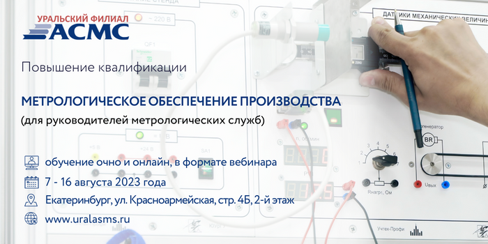 Уральский филиал АСМС проведет повышение квалификации для инженерно-технических работников метрологических служб на тему: