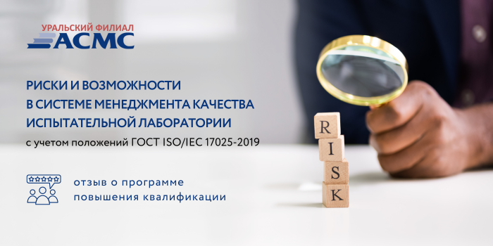 В июне в Уральском филиале АСМС 36 специалистов прошли повышение квалификации по программе «Риски и возможности в системе менеджмента качества испытательной лаборатории (с учетом положений стандартов ГОСТ ISO/IEC 17025-2019 и ISO 9001)».