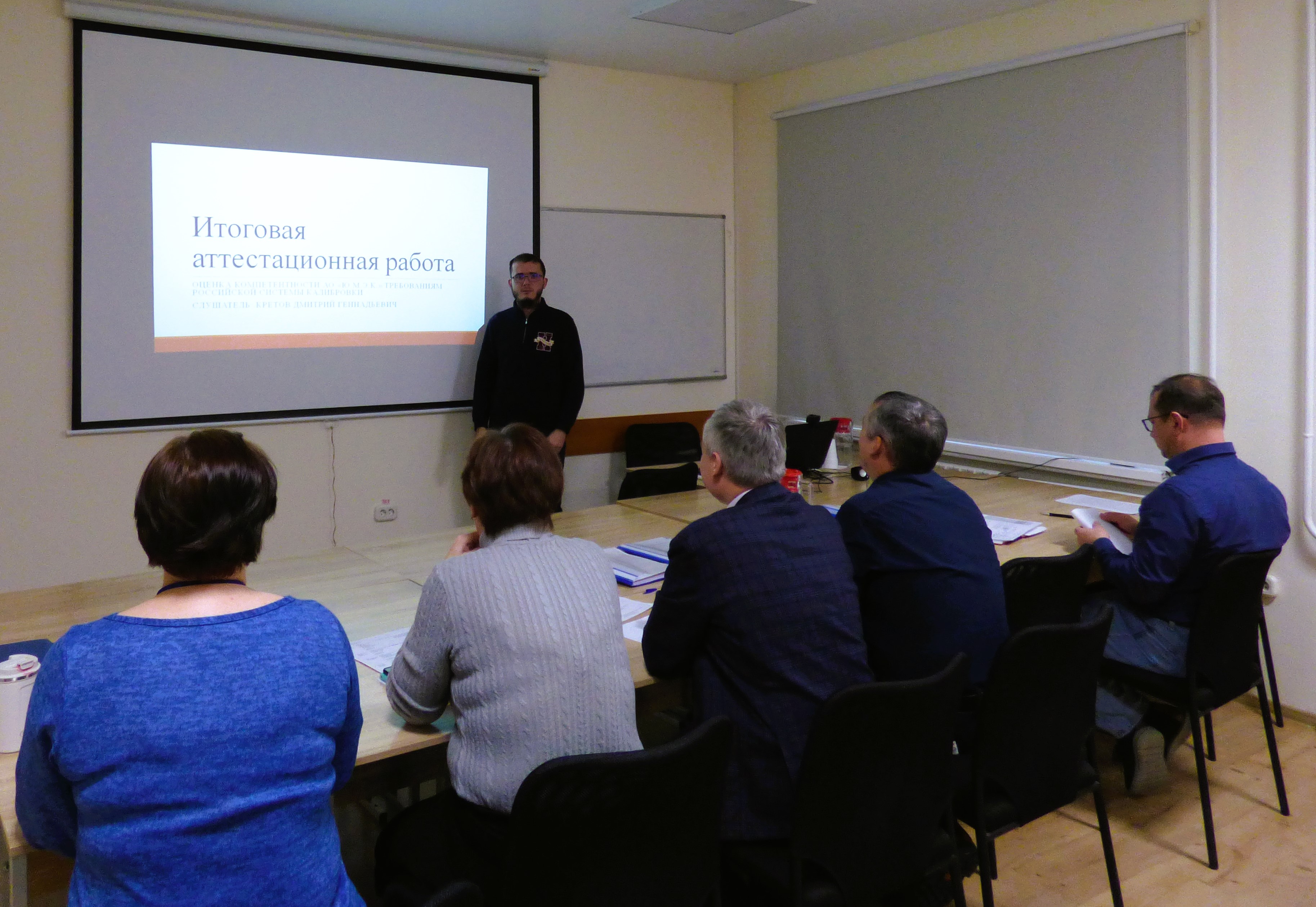 Защита проходила в форме доклада и презентации результатов по теме своей аттестационной работы и ее обсуждения: ответы на вопросы членов комиссии, демонстрация знаний основных нормативных актов и методических документов в области единства измерений и обеспечения испытаний, умения выстраивания взаимосвязей в профессиональной деятельности.