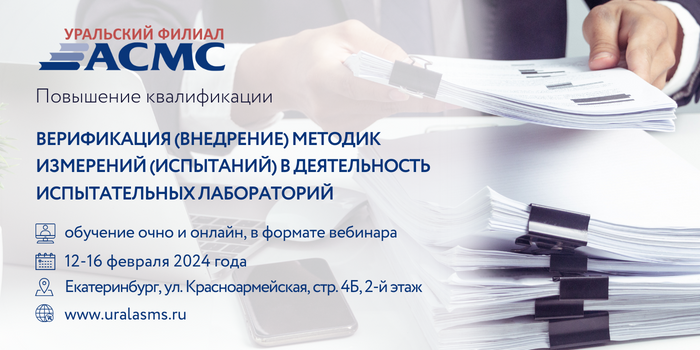 12-16 февраля программа повышения квалификации "Верификация (внедрение) методик измерений (испытаний) в деятельность испытательных лабораторий"