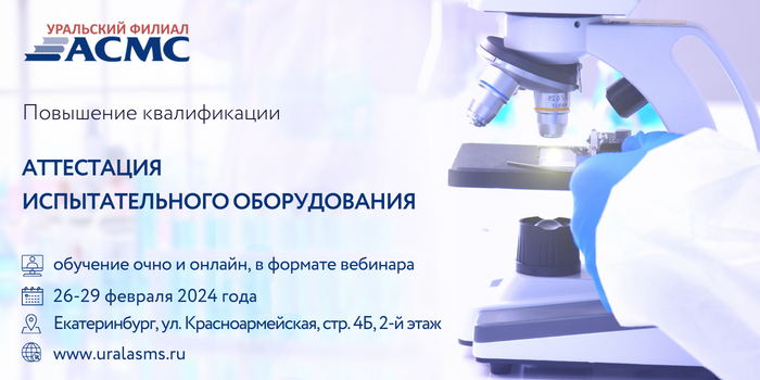 26 – 29 февраля программа повышения квалификации «Аттестация испытательного оборудования»