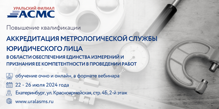 Уральский филиал АСМС проведет повышение квалификации для инженерно-технических работников метрологических служб на тему: «Аккредитация метрологической службы юридического лица в области обеспечения единства измерений и признания ее компетентности в проведении работ», (36 академических часов)