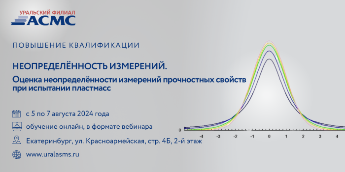 Уральский филиал АСМС проведет повышение квалификации для руководителей и специалистов испытательных лабораторий, специализирующихся на разрушающих методах испытаний на тему: «Неопределенность измерений. Оценка неопределённости измерений прочностных свойств при испытании пластмасс», 20 академических часов.