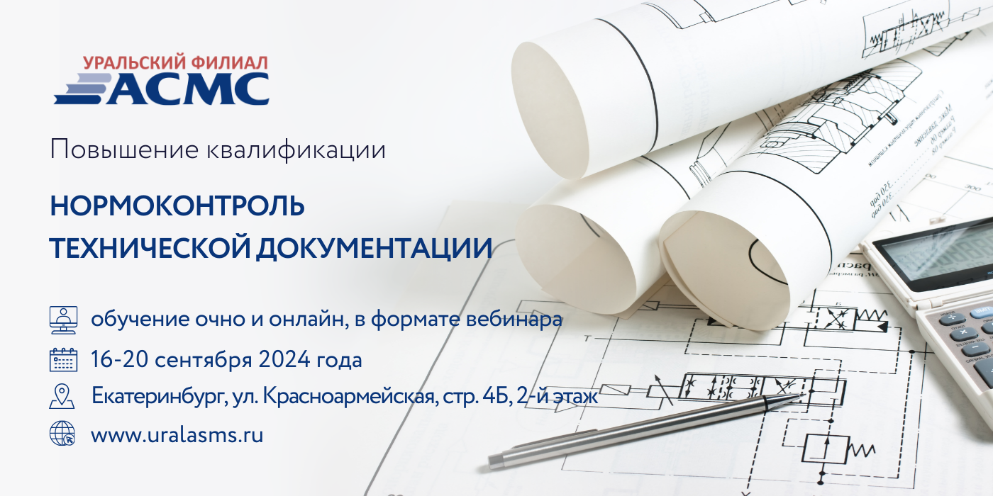 Уральский филиал АСМС проведет повышение квалификации для руководителей и сотрудников, проводящих нормоконтроль технической документации, разработку конструкторских и технологических документов на тему: «Нормоконтроль технической документации», 36 академических часов.