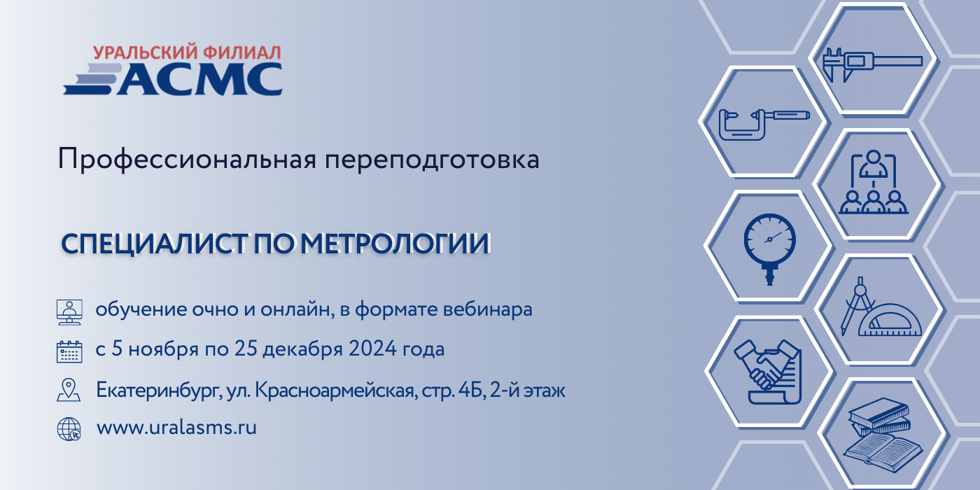 Уральский филиал АСМС проводит дополнительную профессиональную программу «Специалист по метрологии», предназначенную для переподготовки специалистов метрологических служб по направлению «Поверка и калибровка средств измерений».