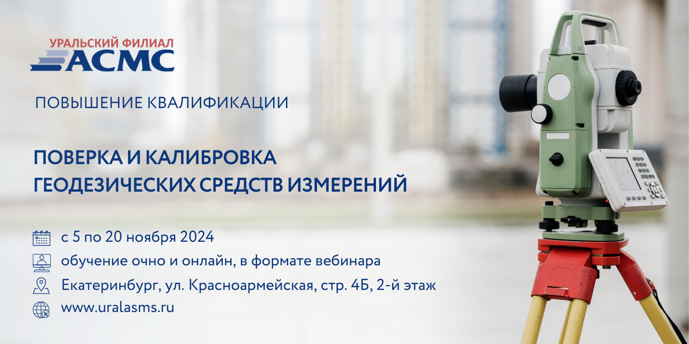 Уральский филиал АСМС проведет повышение квалификации для руководителей и специалистов метрологических служб предприятий, а также инженерно-технических работников на тему: «Поверка и калибровка средств геодезических измерений», 102 академических часа.