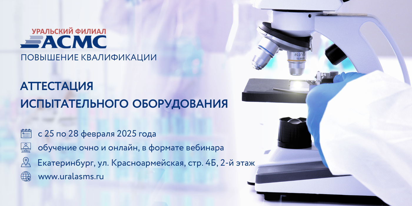 Уральский филиал АСМС проведет повышение квалификации для руководителей и сотрудников испытательных лабораторий, менеджеров по качеству на тему: «Аттестация испытательного оборудования», 36 академических часов.