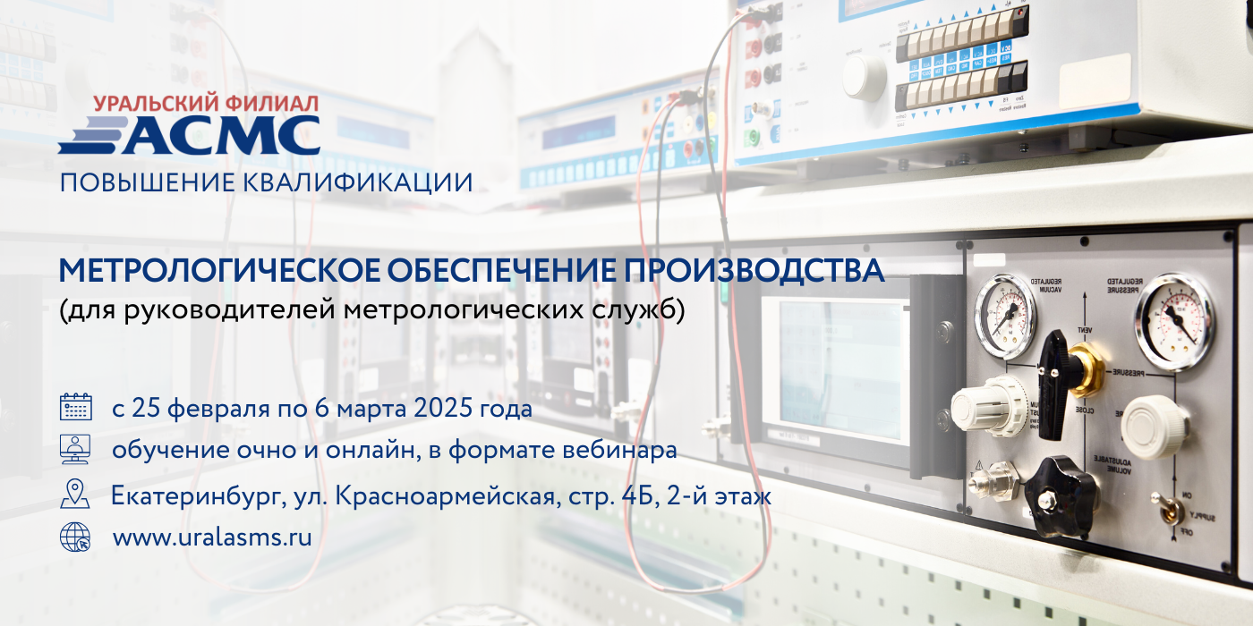 Уральский филиал АСМС проведет повышение квалификации для инженерно-технических работников метрологических служб на тему: «Метрологическое обеспечение производства (для руководителей метрологических служб)», 60 академических часов.