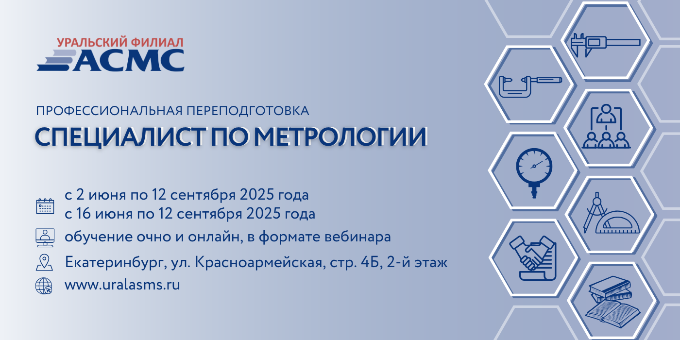 Уральский филиал АСМС проводит дополнительную профессиональную программу «Специалист по метрологии», предназначенную для переподготовки специалистов метрологических служб по направлению «Поверка и калибровка средств измерений».