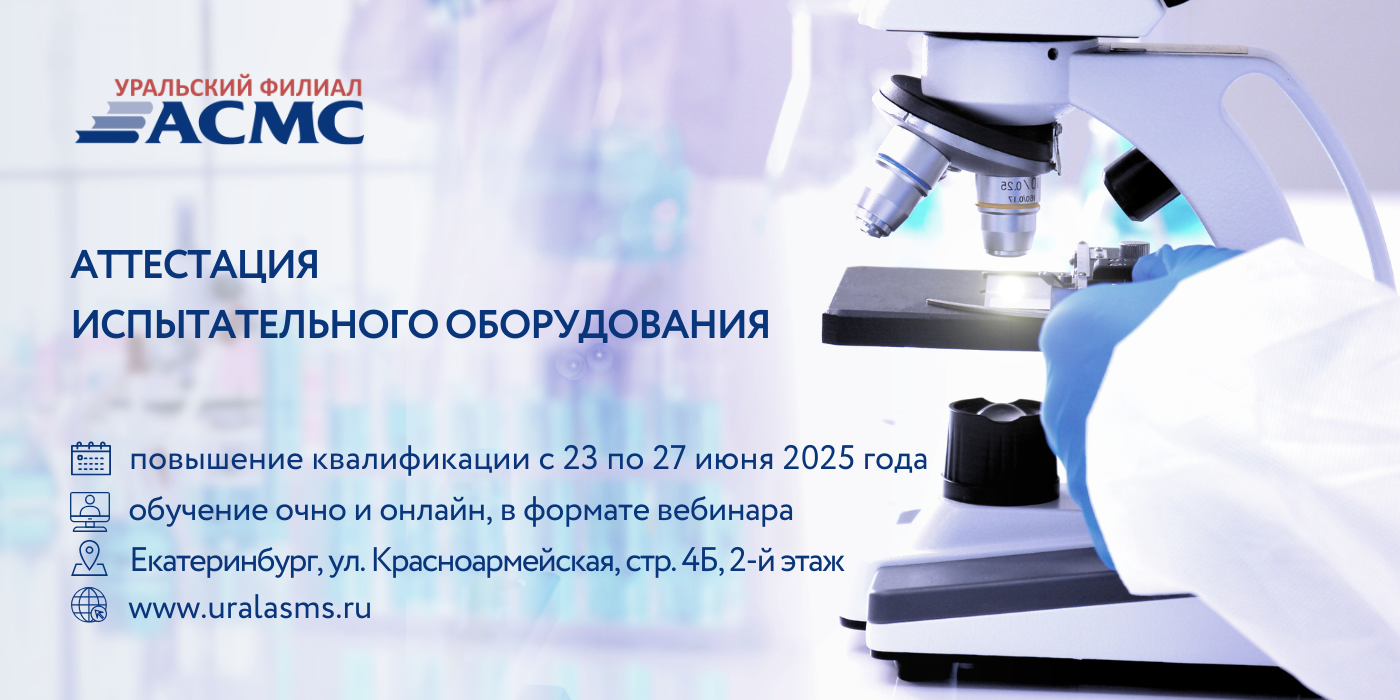 Уральский филиал АСМС проведет повышение квалификации для руководителей и сотрудников испытательных лабораторий, менеджеров по качеству на тему «Аттестация испытательного оборудования», 36 академических часов.