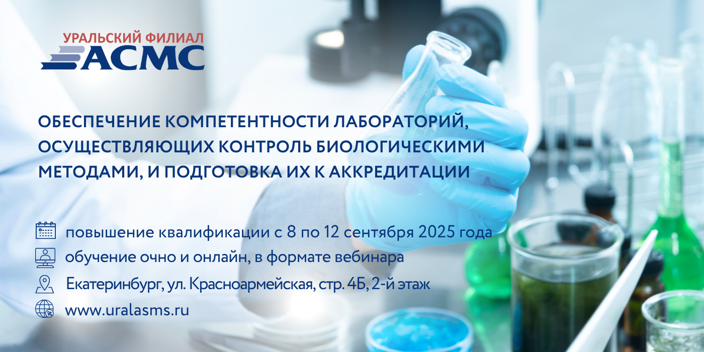 Уральский филиал АСМС проведет повышение квалификации для руководителей и специалистов испытательных лабораторий на тему «Обеспечение компетентности лабораторий, осуществляющих контроль биологическими методами, и подготовка их к аккредитации», 36 академических часов.