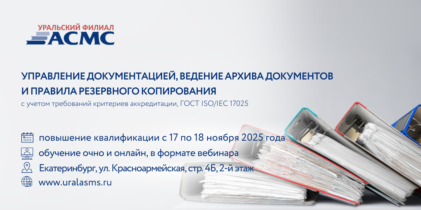 «Управление документацией, ведение архива документов и правила резервного копирования с учетом требований Критериев аккредитации, ГОСТ ISO/IEC 17025», 16 академических часов.