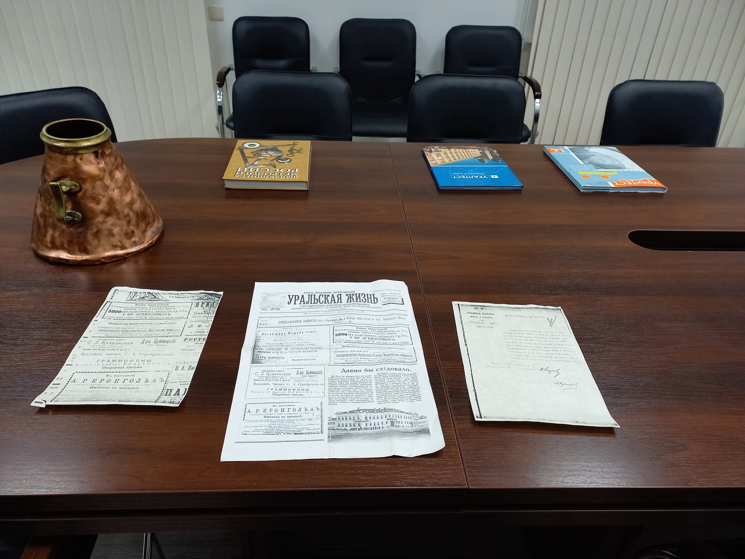 Уральский филиал АСМС предоставил для выставки один из экспонатов – меру объёма жидкости «полведра», изготовленную в 1890 году.